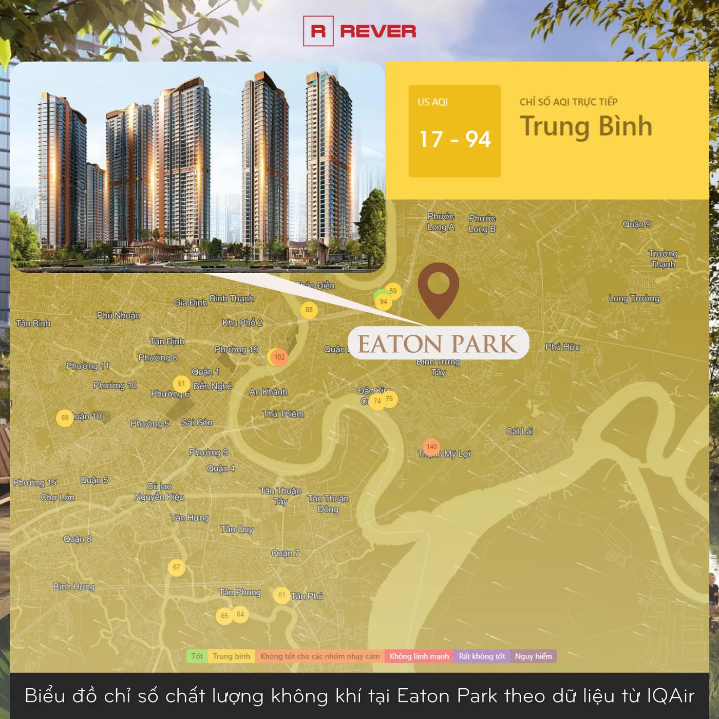 Mặc dù nằm trong vùng quy hoạch trọng điểm, khu xung quanh Eaton Park vẫn còn nhiều mảng cây xanh, chỉ số chất lượng không khí US AQI khoảng từ 17 - 94 được đánh giá có chất lượng tốt và trung bình tùy theo khu vực. Khu vực này có mật độ dân số thấp, ít khu công nghiệp, tuy nhiên nhiều vị trí đường đang thi công cũng như lưu lượng giao thông qua lại lớn, khó tránh khỏi khói xe cộ và bụi mịn.